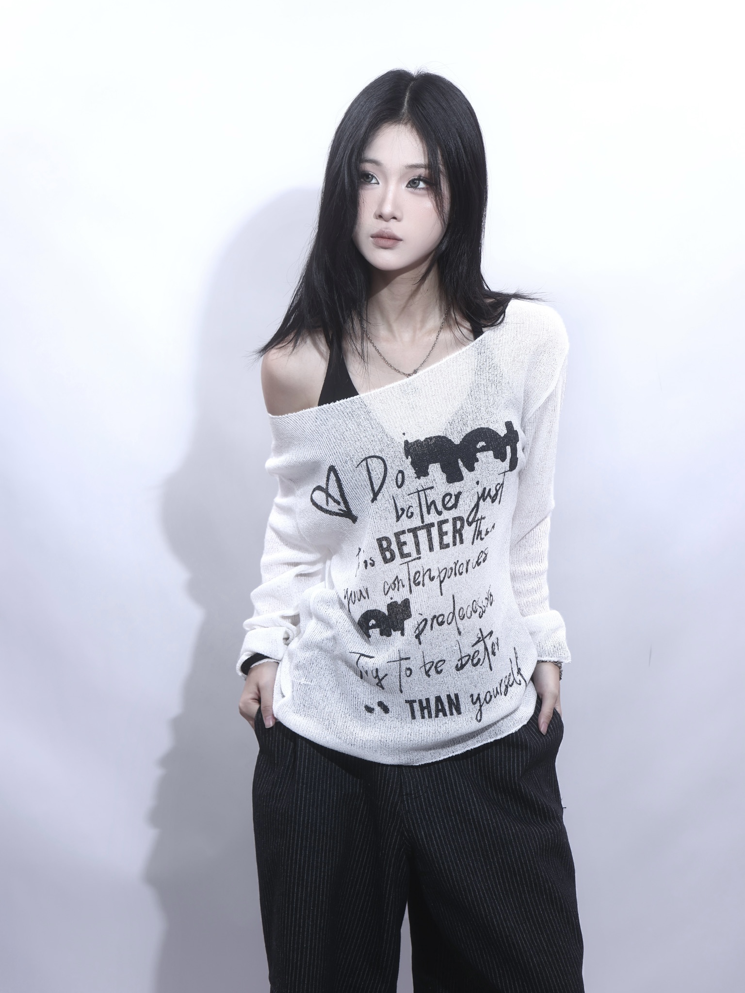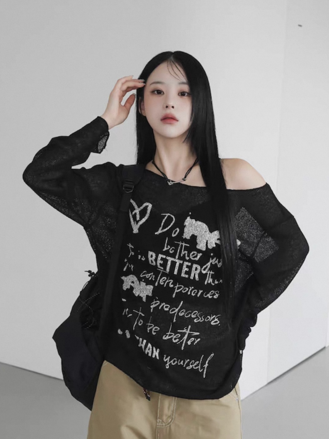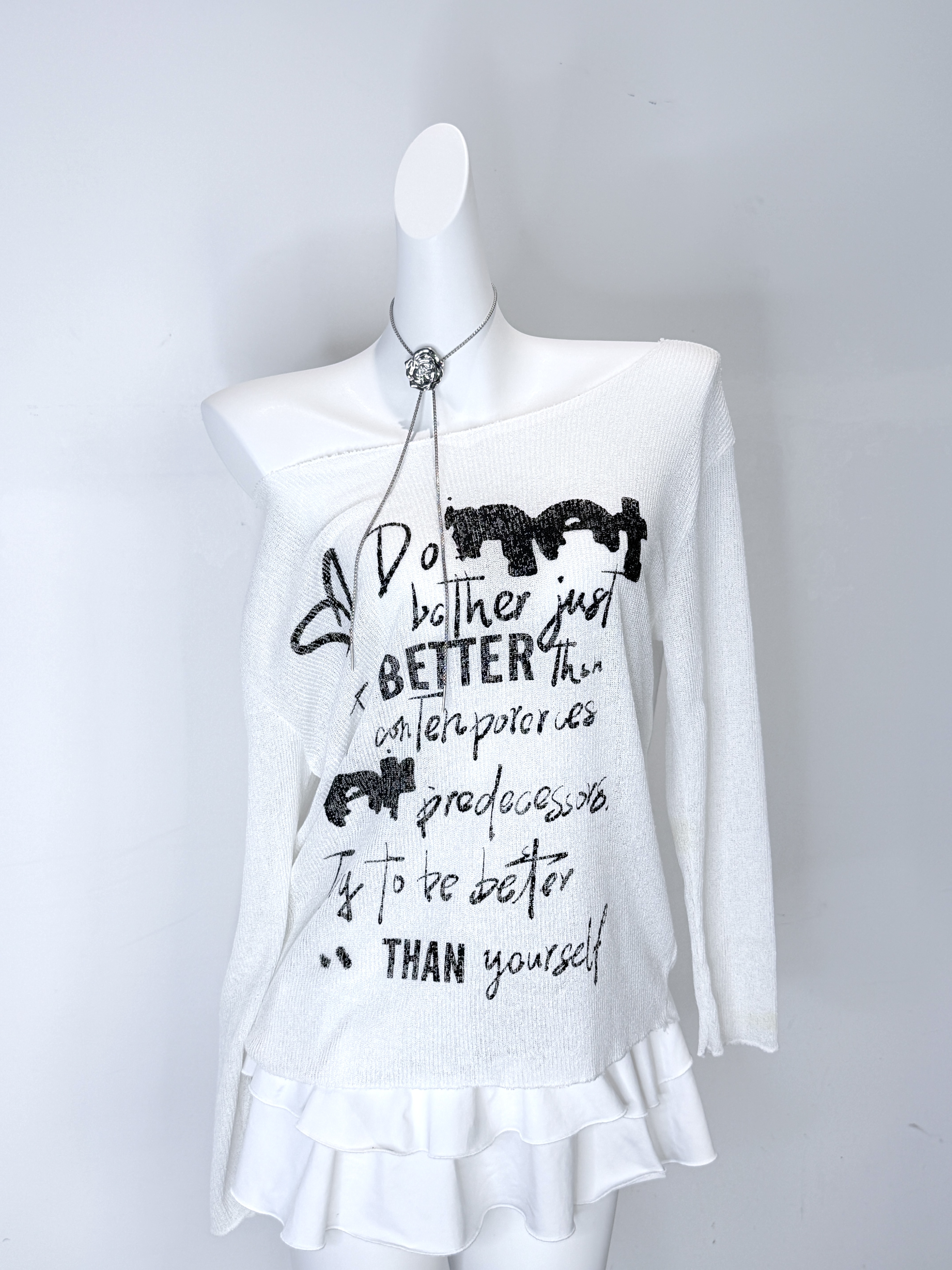 小眾品牌 斜肩寬鬆針織上衣