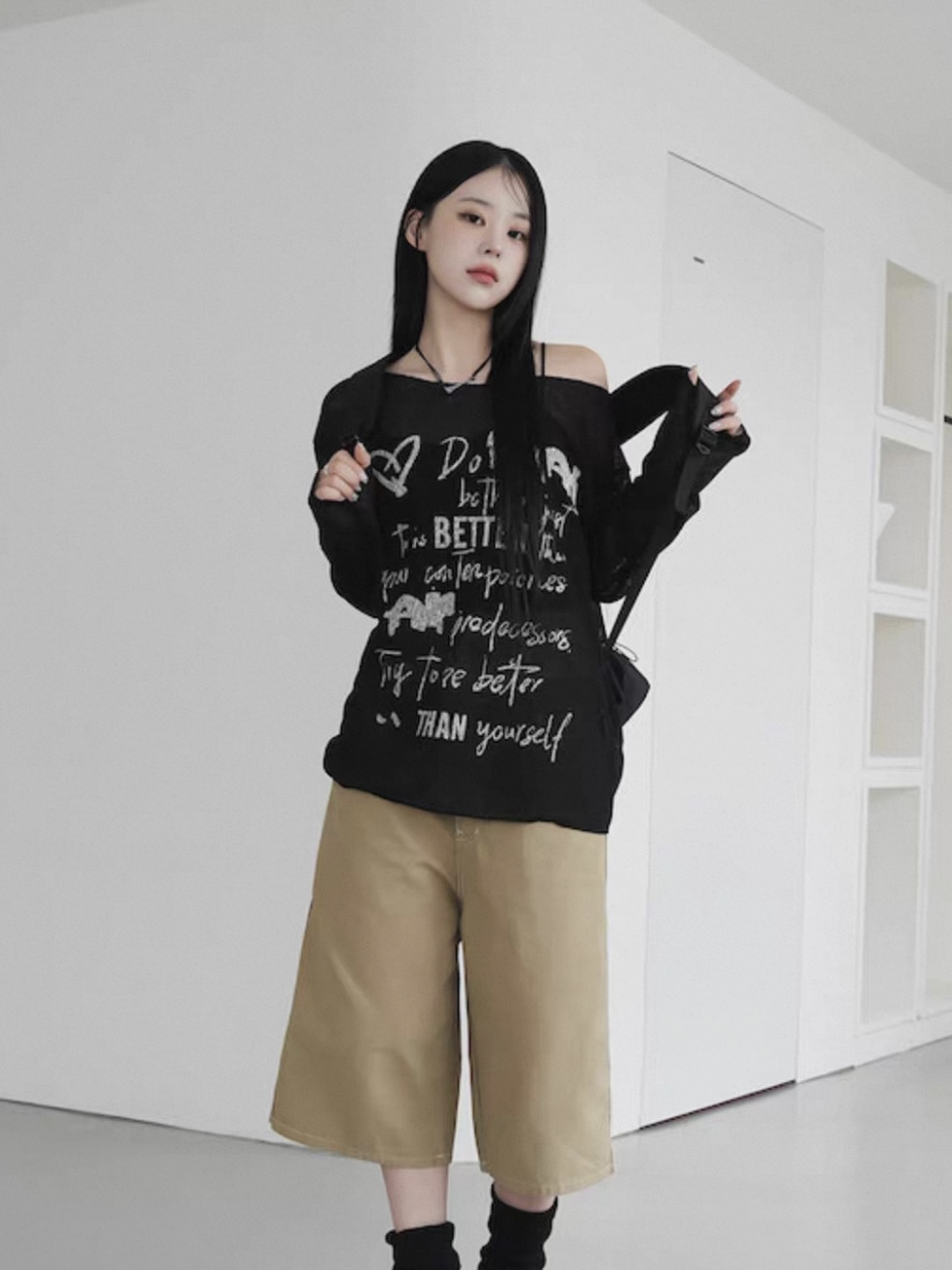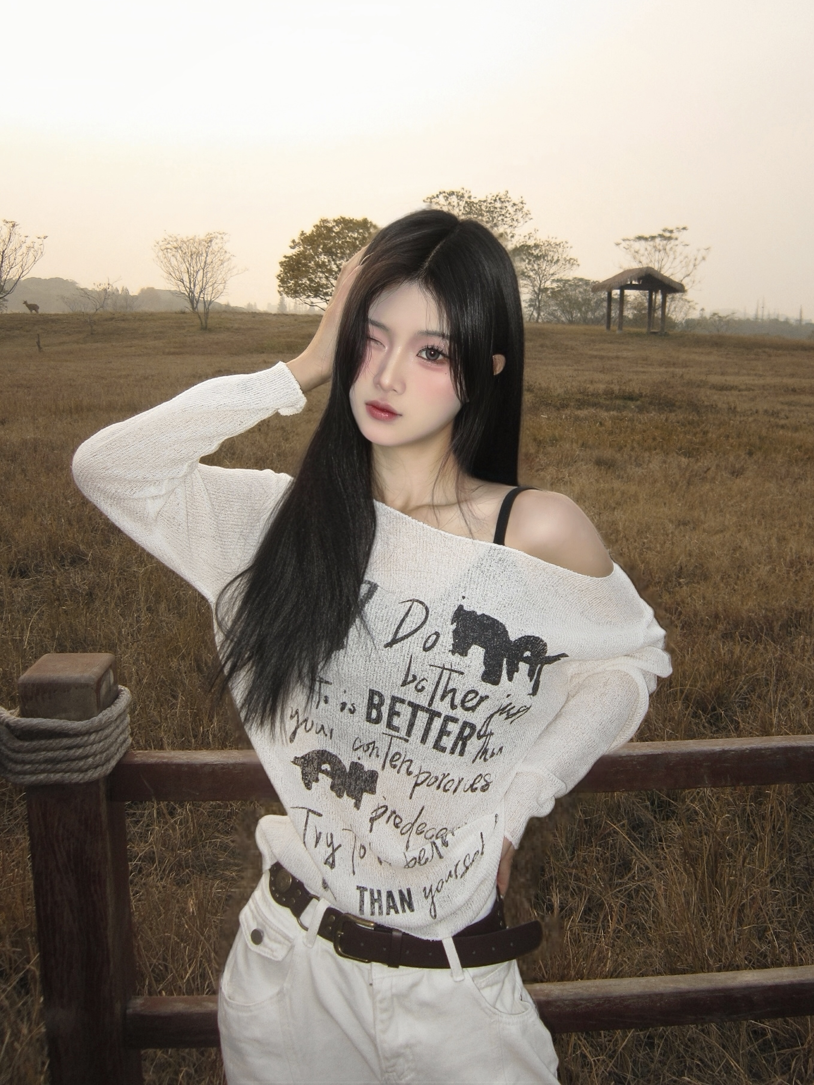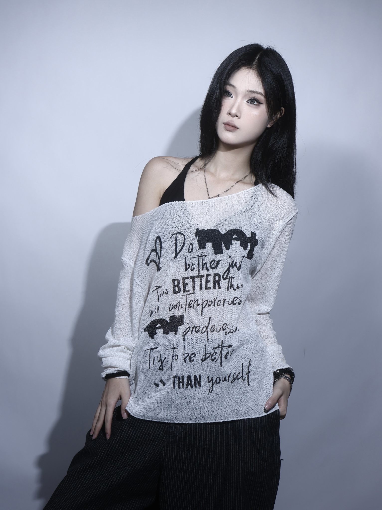 小眾品牌 斜肩寬鬆針織上衣