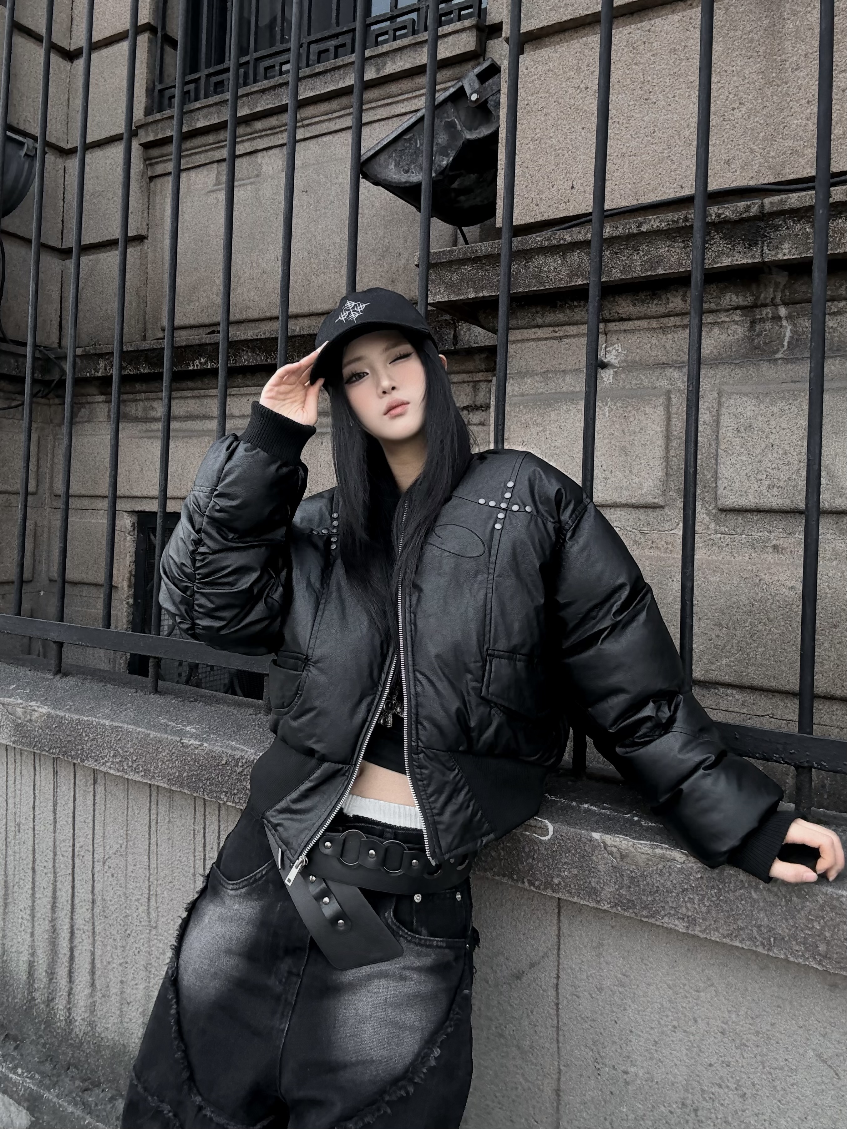 重工細節短版飛行羽絨外套
